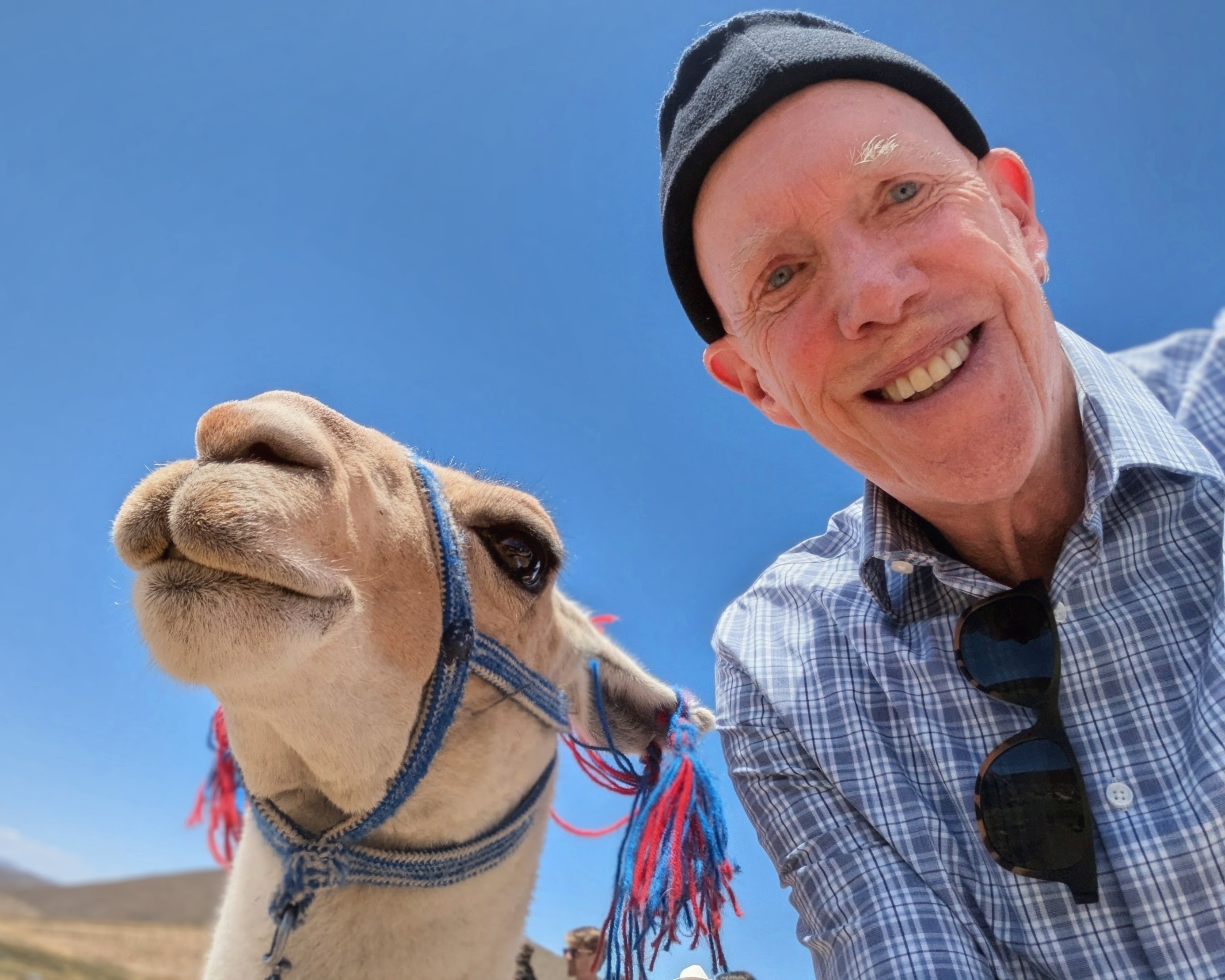 At a pit stop Edd got up close and personal for a selfie with a friendly llama.