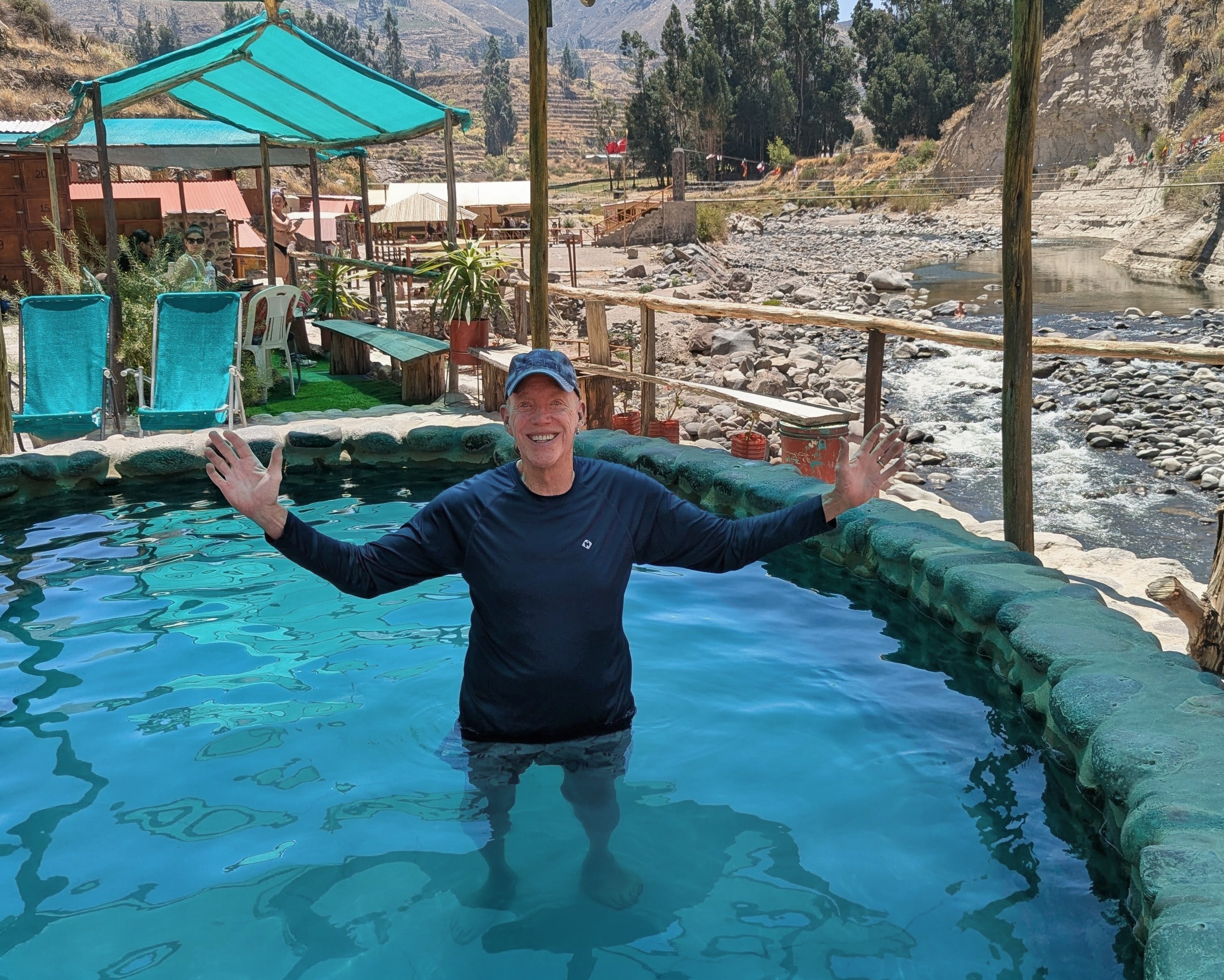 We paid a visit to one of several thermal hot springs in the area located right next to the Colca River.